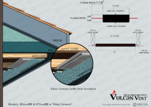 Vulcan Vents soffit vents use a baffle-free design to encourage air to circulate freely under the roof covering. Vulcan Vents do not use airflow-interrupting baffles, resulting in more venting per square inch for the net free area.